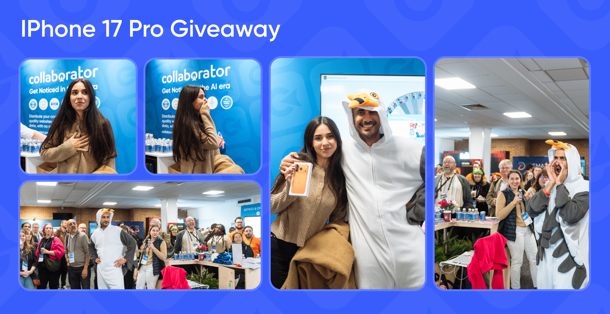 A collage of Collaborator IPhone 17 Pro giveaway pictures at BrightonSEO 2025